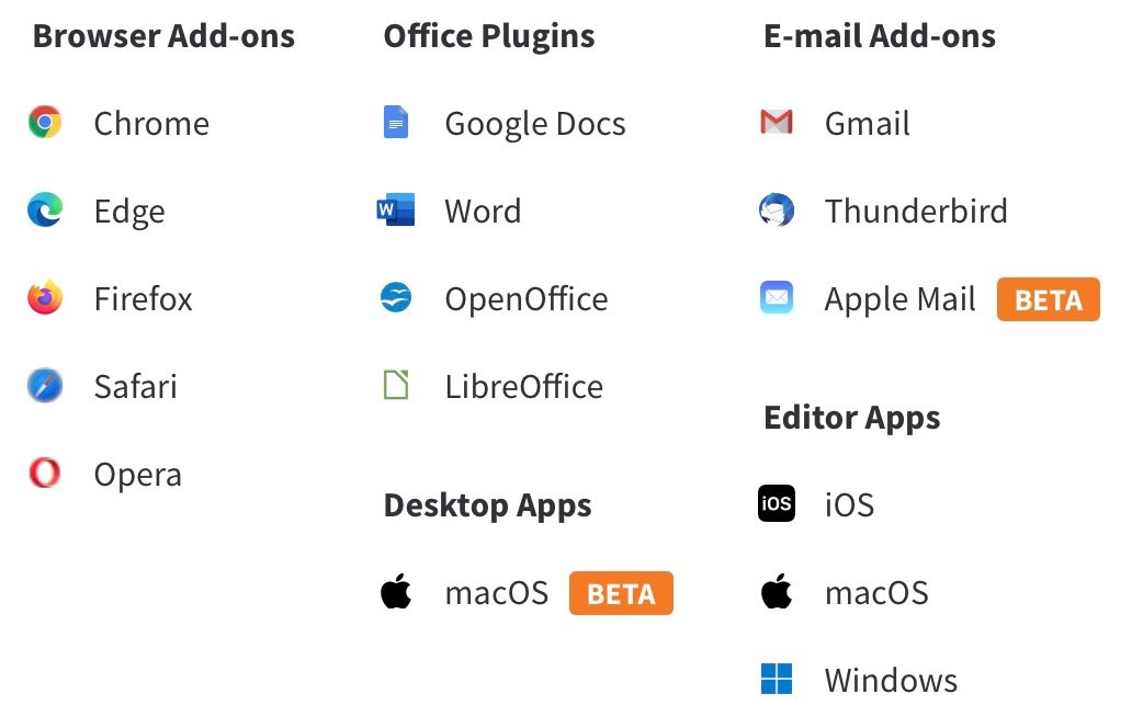 LanguageTool is the comprehensive grammar checker for your texts. It offers quality scoring for your texts, a personal dictionary and a distraction-free writing experience. LanguageTool also provides browser extensions for an even more convenient usage. With LanguageTool, you can be sure that your texts are grammatically correct and free from typos.